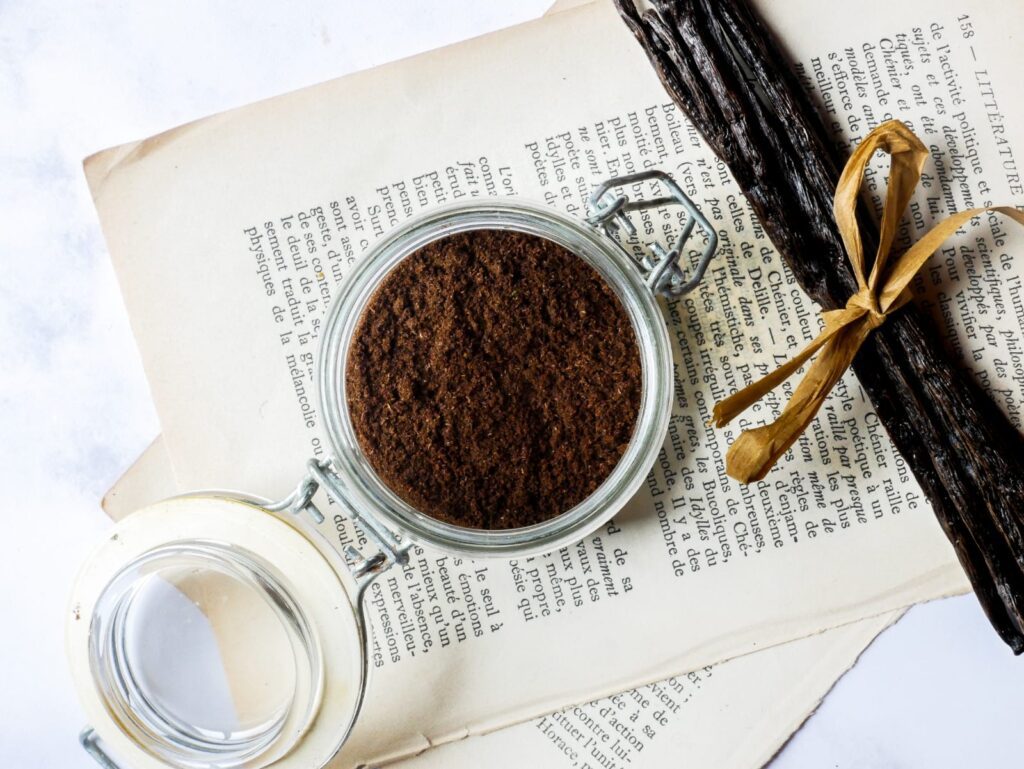 Laissez sécher vos gousses de vanille vidées à l’air libre, ou au four à très basse température. Une fois que les gousses sont cassantes, placez-les dans un blender jusqu’à obtenir de la poudre. Conservez-la dans une boite hermétique.