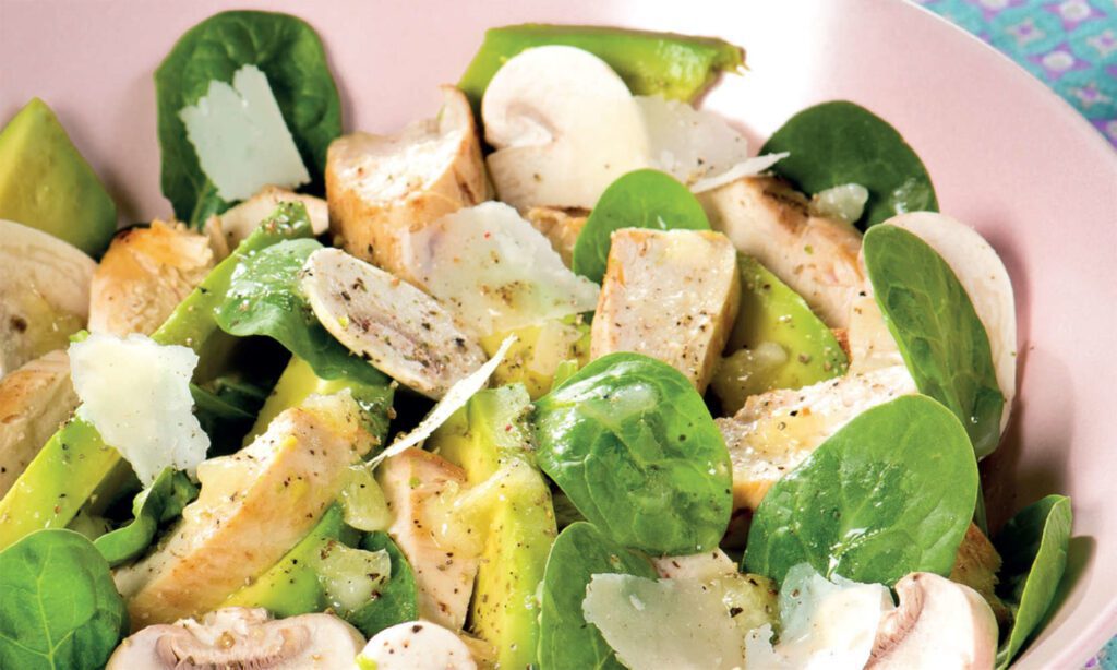 - Pour assembler la salade, disposez les feuilles de salade verte dans un grand saladier. Ajoutez les rondelles de concombre, les tranches d’avocat, les litchis réhydratés et les tranches de poulet grillé.
