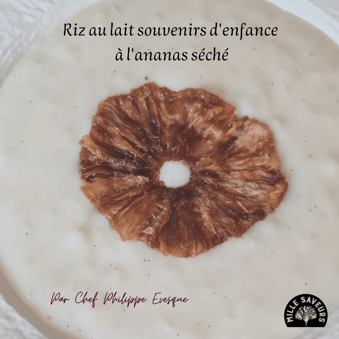 Le Chef Philippe Evesque vous propose sa savoureuse recette de riz au lait à l’ananas. Ce dessert classique est revisité avec l’ajout d’ananas séché, apportant une saveur exotique et une touche d’originalité à ce mets traditionnel.